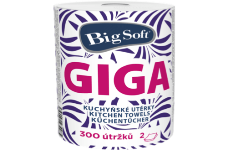 Big Soft Giga multi-purpose kitchen towels can be used practically anywhere. Their versatility stemming from a high level of hygiene, absorbency and performance guarantees that they will find many uses throughout the home, car, garage or workshop. Irreplaceable in everyday hygiene. Thanks to the large absorption, they will do great during any cleaning and will not tear during use. Big Soft Giga towels are extremely environmentally friendly. The packaging and cardboard roll can be fully recycled. Suitable for households with high consumption and space for placement.